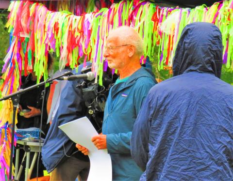 Tony Booth leads the reading of the Declaration of the Rights of the River Cam, and all rivers.